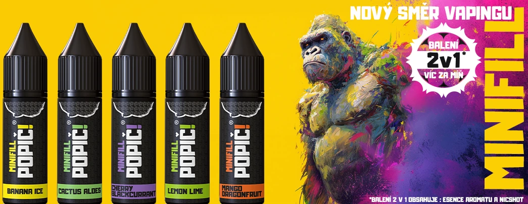 Připrav se na totální POPIČ! zážitek! Vítej v kategorii MINIFILL POPIČ!, která představuje první produkt svého druhu v ČR. Zapomeň na složité míchání a počítání – s tímto inovativním 2v1 systémem máš hotový prémiový e-liquid raz dva. Čekají na tebe příchutě, co ti ustřelí hlavu, a den ode dne budou ještě víc!