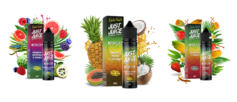 Výrobce Just Juice z Velké Británie představuje svou řadu luxusních ovocných příchutí typu shake & vape, které osloví zejména milovníky ovoce. Čeká na vás řada různorodých ovocných směsí, mezi nimiž nesmí chybět jak tuzemské ovocné mixy, tak také osvěžující tropické kombinace. Všechny příchutě ze série Just Juice prochází přísnými výstupními kontrolami pro uvedení na trh. Jsou vyráběny z těch nejlepších možných surovin pro zachování autentické chuti ovoce.